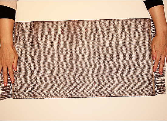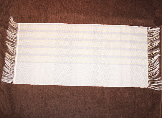 見た目の繊細さとデザインの自由度、水にさらして絞ってもよれない耐久性を活かして、例えば、ランチョンマットやテーブルランナーなどにも展開ができます。